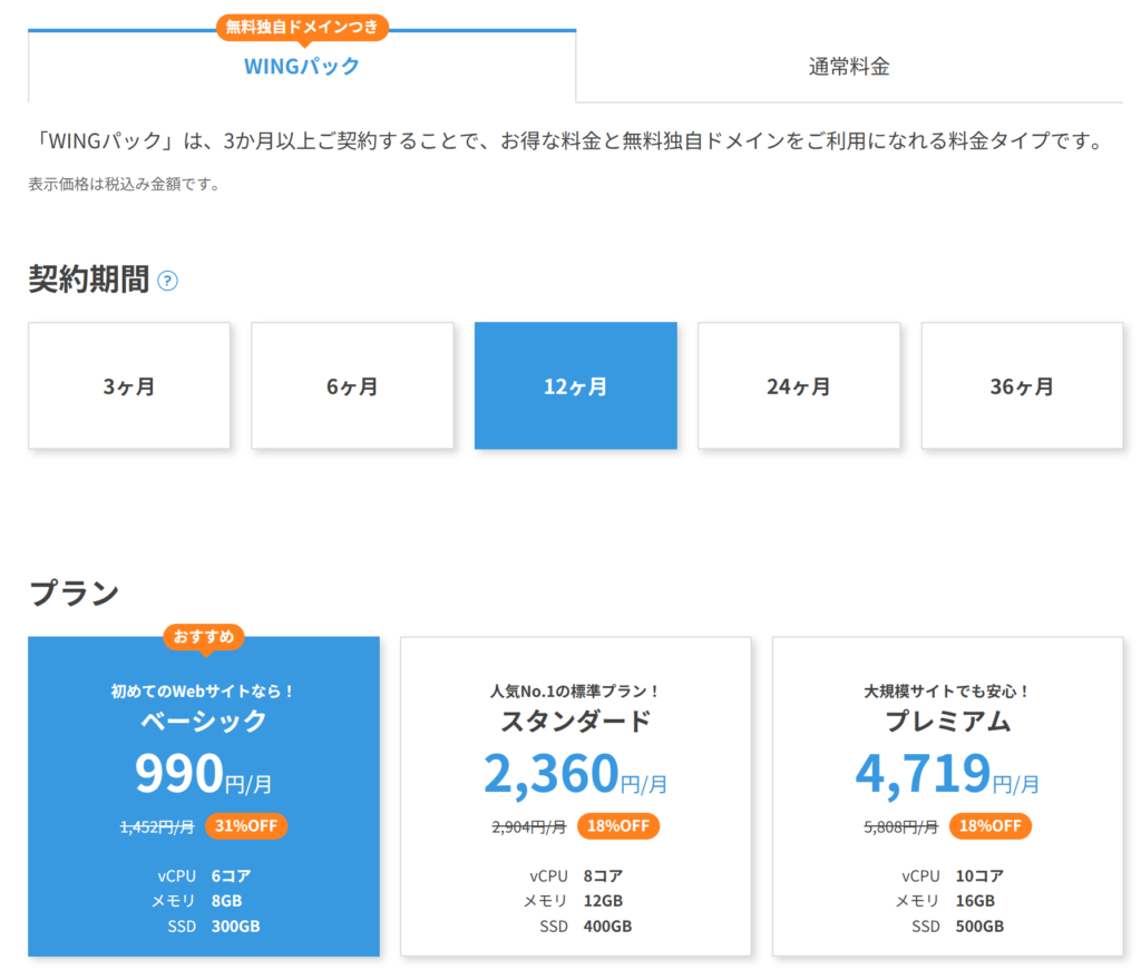 一番ベーシックなプランを選びました。